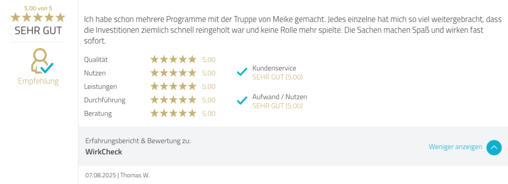 - Mit der bewährten WirkCheck-Vorgehensweise zeigen wir dir in nur 30 Min. den schnellsten Weg zurück ins Wachstum.